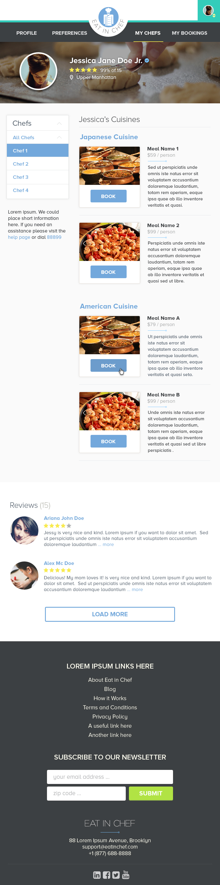 I co-founded Eat In Chef with my partner in order to bring personal chefs and food lovers together and create experiences that would help develop social relationships and lead to a better quality of life. I developed the platform from scratch using modern technologies such as Laravel, ReactJS, & ES6. and engineered a custom matching algorithm that allowed food lovers to view how well they matched with Chefs.